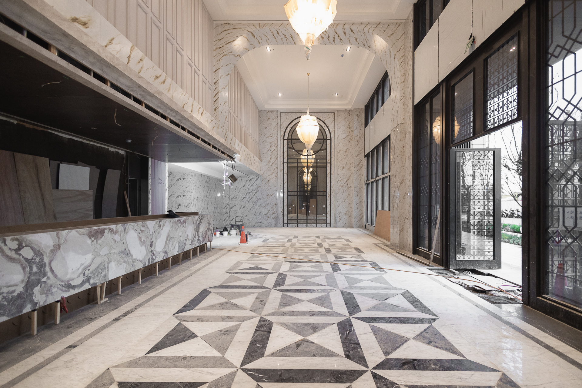 1F 大廳地面磁磚鋪設